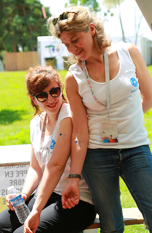 A nos côtés, la sécurité routière et la prévention contre les maladies sexuellement transmissibles proposent d’autres tatouages mais le nôtre, c’est le plus beau! C’est un joli moment de partage hors du temps.