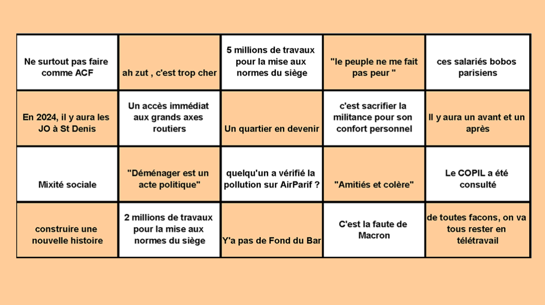 Le principe du BINGO Pipo : cochez chaque case au fur et à mesure que vous entendez ou lisez leur contenu durant les réunions Skype, les apéros Skype etc. Une fois que vous avez obtenu une ligne ou une colonne complète ou encore une des deux diagonales, hurlez dans votre micro Skype : BINGO PIPO !!!