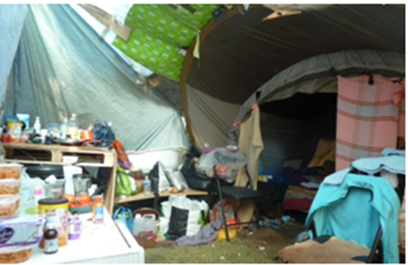 Voici où survivaient ces familles : un lieu de vie indigne, mais avec un minimum d’abri :