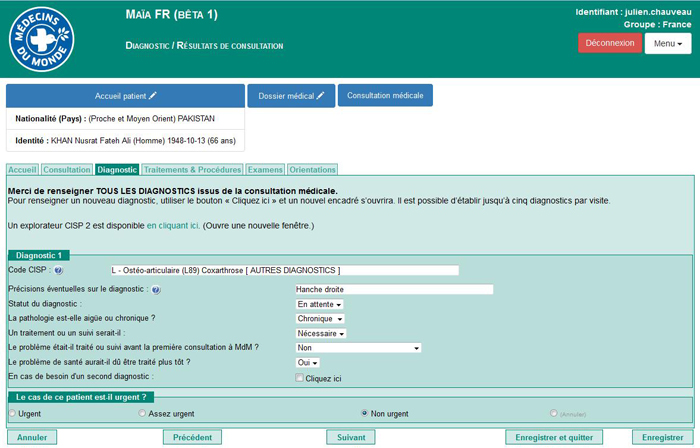 Fondée sur les recommandations de ce groupe de travail, la mise en œuvre du projet « Dossiers patients informatisés » (DPI) a été validée en bureau du Conseil d’Administration de MdM France en juillet 2014 avec la prescription de créer un outil pragmatique au service des bénévoles sur le terrain.