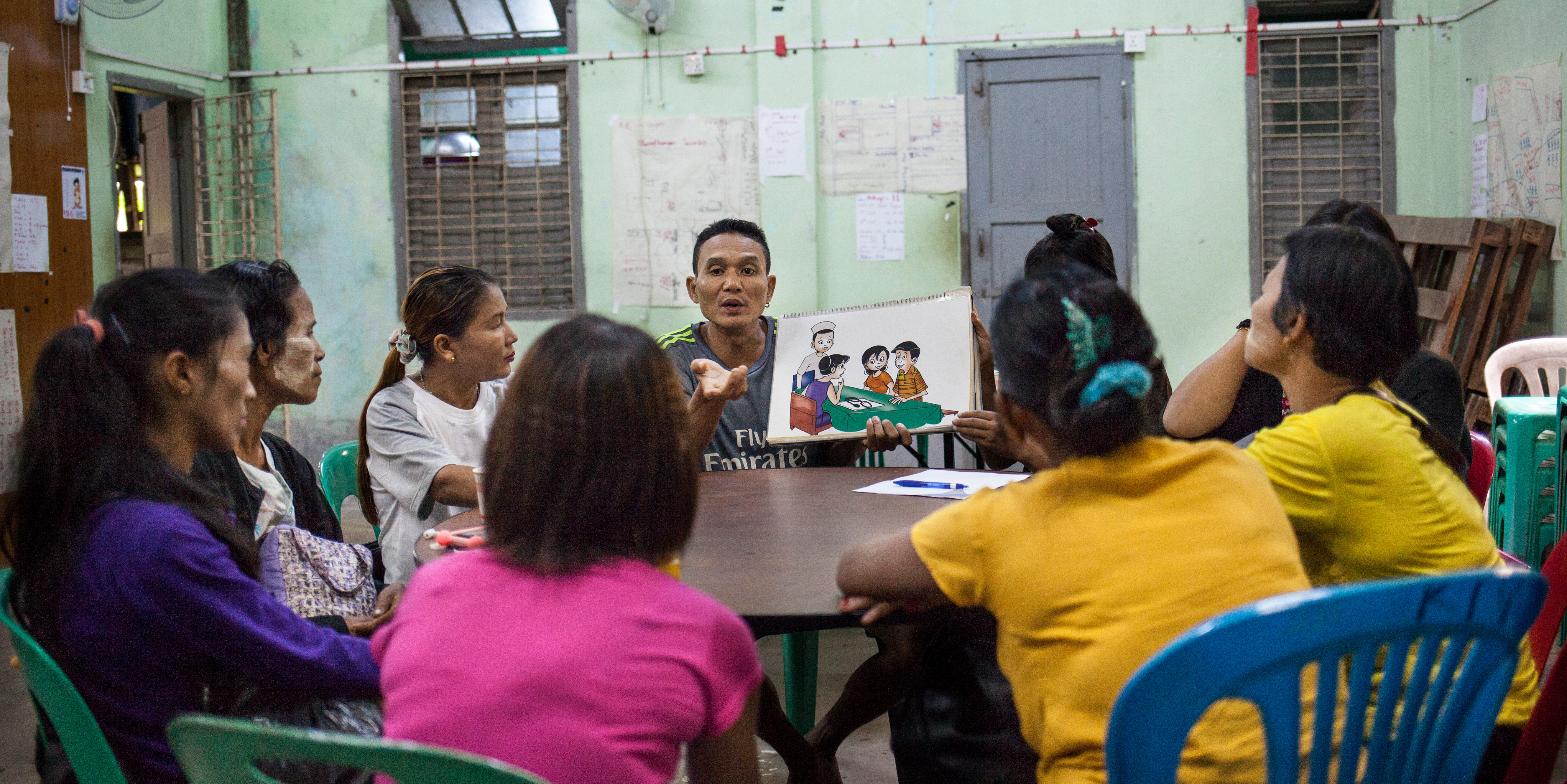 Afin d’aller à la rencontre des personnes les plus éloignées des dispositifs, MdM a mis en place des cliniques mobiles et s’appuie sur le travail de groupes d’entraide implantés à Yangon. Ces groupes, créés par des femmes, des hommes, des personnes transgenres, des travailleurs du sexe, des personnes atteintes du VIH ou d’autres maladies sexuellement transmissibles, ont vu le jour dans les années 2 000. Ces groupes naissent du constat que le changement social doit passer par la mobilisation des personnes directement concernées. C’est en renforçant leur capacité d’agir et en combattant les discriminations qu’une évolution favorable de leurs conditions d’existence est possible.