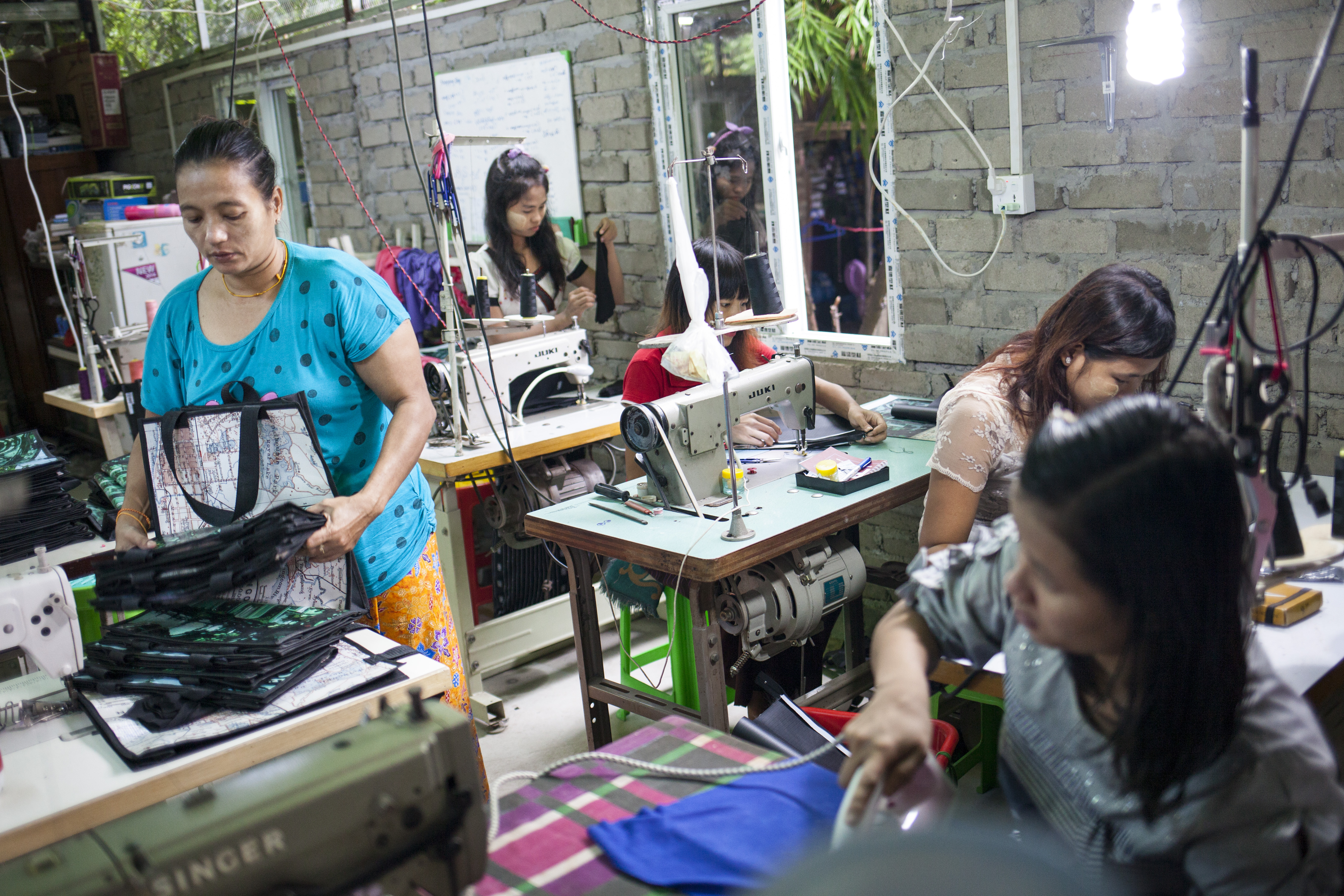 _MG_0605Couturières membres de Home Sweet Home réalisant des pochettes pour le financement du groupe _MG_0702Artisanats et production du groupe d’entraide, dans un grand magasin au centre de Yangon