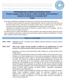 Les tables rondes du samedi ont abordé deux thématiques qui nous interpellent fortement aujourd’hui : la souffrance psychosociale des personnes migrantes/exilées et l’apparition des collectifs citoyens qui bousculent souvent nos modes d’action et nos messages. Très différentes, elles posent la double interrogation de notre capacité à faire bouger les lignes et celles des autres acteurs (institutions, partenaires…), mais aussi et surtout de notre capacité à accepter le changement.