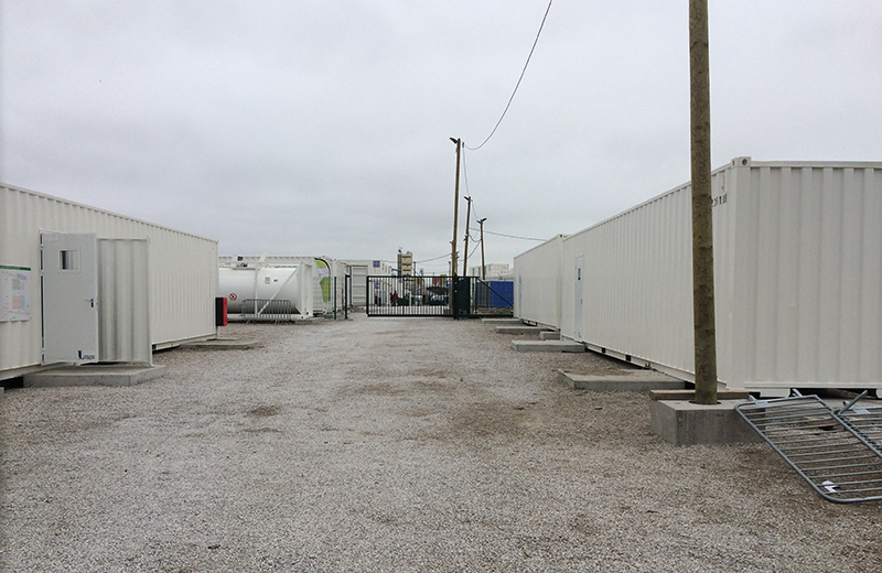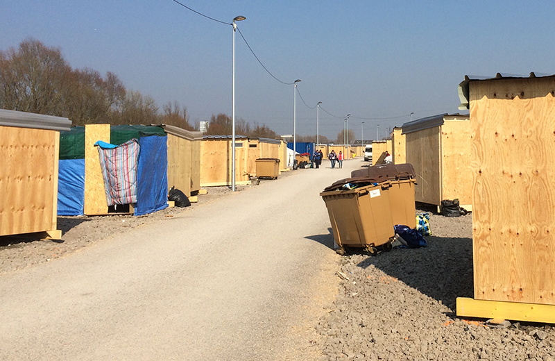 • Une partie « containers » qui rassemble, derrière de hautes clôtures, un empilement de containers propres et blancs, mais sans âme où les familles s’entassent parfois à douze. Tout entrant est contrôlé par son empreinte palmaire. L’ensemble est géré par une association pilotée par l’État : la Vie Active.