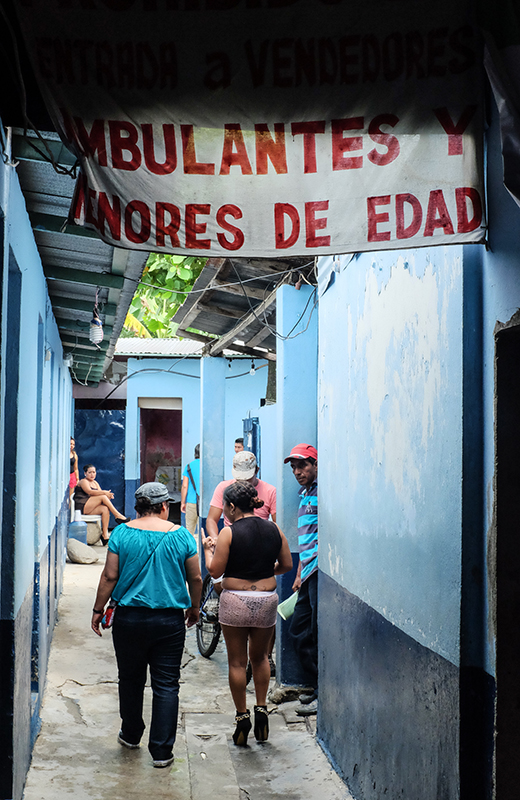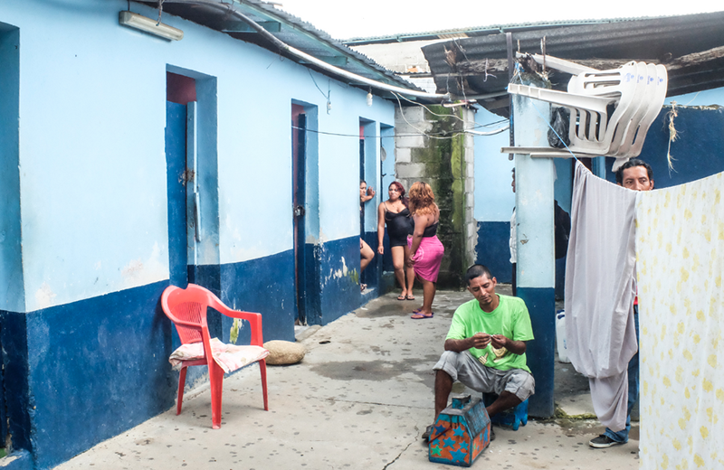 MdM veut implanter son action dans cette ville, à 40 kilomètres au nord de Tapachula, sous l’impulsion des promotrices. On comprend leur insistance dès que l’on arrive. Nous entrons dans un premier lieu par un petit couloir étroit avec des sortes de cabines de piscine, sauf que ces pièces lugubres sont les chambres des femmes. Elles y travaillent et y vivent toute la journée, certaines y dorment aussi sans pouvoir sortir, le lieu est fermé la nuit pour raison de sécurité. Dans ces minuscules cellules, on trouve un lit et rien d’autre, même pas le moindre point d’eau. Entre deux clients il faut courir vers un petit lavabo commun au fond de la cour. Des vendeuses de citrons verts passent régulièrement, on comprend qu’ils servent de désinfectant intime. Bien sûr, il est impossible de cuisiner. L’hôte de ces lieux, à qui les femmes payent un loyer, leur fait porter des plateaux repas. Jamais je n’avais vu des êtres humains réduits à un tel stade animal. Quelques femmes sont ici sous la contrainte d’un proxénète mais elles ne sont pas majoritaires.