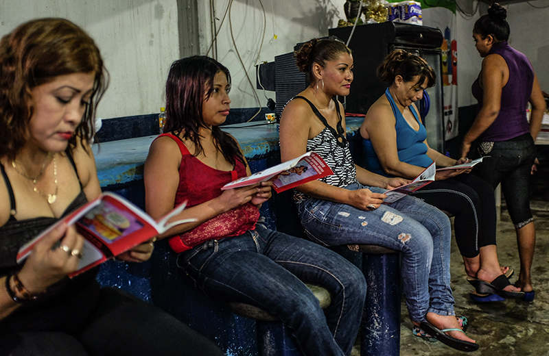 Tant de parcours, tant d’histoires … Quelques-unes sont mexicaines, la plupart a fui la violence qui sévit en Amérique centrale, particulièrement au Honduras et au Salvador. Certaines ont tout juste appris à lire, d’autres ont suivi des études secondaires. Mariées, en union libre, divorcées ou célibataires, toutes ont des enfants. Elles ont travaillé ou travaillent toujours dans les bars en tant que serveuses et danseuses.