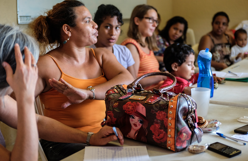 Tour de table, tout le monde se présente : les promotrices, bien sûr, qui précisent si elles travaillent en ce moment, Brenda, Sagrario et David, les trois salariés mexicains respectivement coordinatrice, administratrice et logisticien du programme Améliorer l’accès à la santé des femmes migrantes travailleuses du sexe dans le sud du Mexique. Aujourd’hui, la réunion est particulière puisque Betty et Frédérique les bénévoles co-responsables de ce programme sont venues de France rendre leur visite annuelle. Betty nous présente, Nadja, la photographe, et moi-même. Nous sommes ici pour réaliser des portraits, des photos du terrain et recueillir leurs témoignages car à MdM nous tenons à nous appuyer sur la parole des personnes concernées, à ne pas parler à leur place… elles en sont ravies, applaudissent et se portent quasiment toutes volontaires.