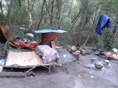 Malgré la mise en place par le gouvernement serbe d’un système de droit d’asile en 2008, la plupart des réfugiés ne restent en Serbie que le temps d’organiser leur passage vers l’Union Européenne. Le village de Bogovadja à 70 km au sud de Belgrade est devenu de fait le hub des migrants en transit en Serbie. Ce village de 300 habitants accueille depuis des années l’un des rares centres d’hébergement de demandeurs d’asile du pays. Et les bois et champs alentour se sont transformés en camps de fortune pour réfugiés. On y voit passer chaque année plusieurs milliers de migrants cherchant des contacts avec les passeurs. Vieilles cabanes réaménagées en dortoirs ou simples couvertures tendues dans les arbres, les conditions de vie y sont déplorables. En hiver lorsque les températures descendent sous la barre du zéro, les quelques rares associations d’aide aux migrants font régulièrement office d’ambulanciers pour des personnes souffrant de gelures ou bronchites aggravées. Les sans-papiers de Serbie n’ont en effet droit à rien, si ce n’est d’être soignés en cas d’urgence.