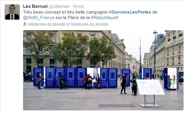 L’exposition proposait aux passants d’ouvrir des portes afin de découvrir le portrait de personnalités connues ou non qui expriment un regard solidaire sur la migration. Les portraits ont été pris par Samuel Lugassy, un photographe qui a entrepris un travail personnel sur l’identité depuis l’année 2010.