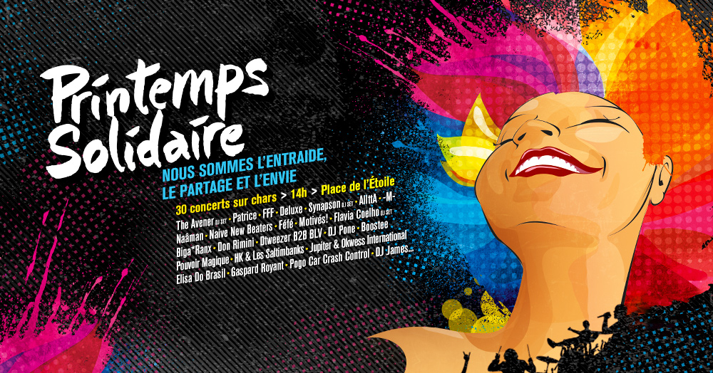 A l’initiative de Solidarité Sida, trente artistes et une soixantaine d’ONG, dont MdM, se donnent rendez-vous sur les Champs-Élysées pour une manif-concert exceptionnelle ce dimanche 16 avril. Les artistes se relaieront sur 10 chars lors d’un grand défilé sur les Champs Élysées. Au programme : The Avener, Matthieu Chedid, Patrice, FFF, Deluxe, Synapson, AllttA, Naâman, Naive New Beaters, Féfé, Motivés!, Flavia Coelho, Biga*Ranx, Don Rimini, Dtweezer B2B BLV, DJ Pone, Boostee, Pouvoir Magique, HK & Les Saltimbanks, Jupiter & Okwess International, Gaspard Royant, Pogo Car Crash Control…