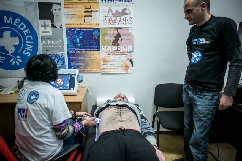 En Géorgie, le programme de MdM, de New Vector et de leurs partenaires de terrain a renforcé et fait reconnaitre la place du travailleur pair comme acteur clé de la santé des communautés d’usagers de drogue. Elle prend une importance particulière sur l’accompagnement des usagers qui suivent un traitement pour l’Hépatite C. L’éducateur pair est présent à toutes les étapes du traitement. De l’appui administratif pour constituer les dossiers d’entrée dans le programme, en passant par le counseling – entretiens pré/post traitement – à l’accompagnement dans les structures de santé, il est une présence quotidienne auprès de « ses » patients.