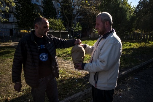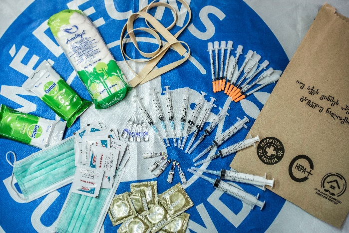 A Tbilissi, les journées des travailleurs pairs s’articulent le plus souvent autour des allées et venues des bénéficiaires, de chez eux au drop-in-center (DIC), le centre d’accueil de MdM et New Vector. Dans une salle qui leur est réservée au DIC, les éducateurs pairs travaillent directement avec les usagers qu’ils accompagnent et suivent tout au long de leur parcours. Ils sont à l’écoute des besoins médicaux et sociaux des usagers, leur distribuent du matériel stérile, les informent sur les utilisations les plus appropriées. Ils en profitent pour diffuser de messages de prévention sur les risques de transmission des maladies infectieuses, les informer sur leurs droits, leur présenter l’offre de soins du DIC (consultations dentaires, dépistage, fibroscan…), les services d’autres structures de santé, les formes de traitements disponibles… Les travailleurs pairs déconstruisent les rumeurs et préjugés courants dans les milieux des usagers et les aident à construire des solutions aux différents problèmes sociaux et médicaux qui les affectent.