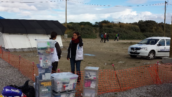 C’est la première action de soins de ce type « urgence internationale » que MdM France organise, et elle n’est pas destinée à être pérenne (en principe jusqu’au début du mois de septembre). MdM veut surtout montrer que des besoins de santé ne sont pas satisfaits, et qu’il appartient aux autorités de prendre le relais. Auparavant en effet, l’accès aux soins était fort aléatoire et ceux-ci très segmentés et totalement saturés : une consultation infirmière à Jules Ferry, à 2 kms de la majorité des campements et avec une limitation du nombre des patients vus chaque jour, et des soins dispensés dans Calais, à 7 kms encore, avec les mêmes limites du nombre de prises en charge, le tout se traduisant par de nombreux refus, reports ou renoncements. Bien évidemment, le témoignage et le plaidoyer auprès des autorités publiques seront nourris par les données systématiquement recueillies pendant les soins, mais, même si cet objectif est prioritaire, comme dans tous les désengagements de mission, une attention particulière devra être gardée pour éviter un arrêt brutal des soins. C’est là le défi quotidien de MdM et de son trépied fondateur que de garder l’équilibre et l’importance relative de chacun des trois pieds (soigner/témoigner-plaider/changer), pour que les soins ne deviennent pas la seule priorité mais pour qu’ils ne soient pas non plus seulement un des processus d’alimentation des plaidoyers.