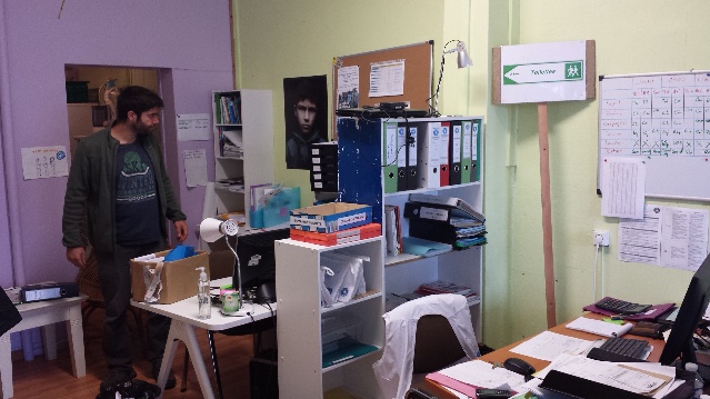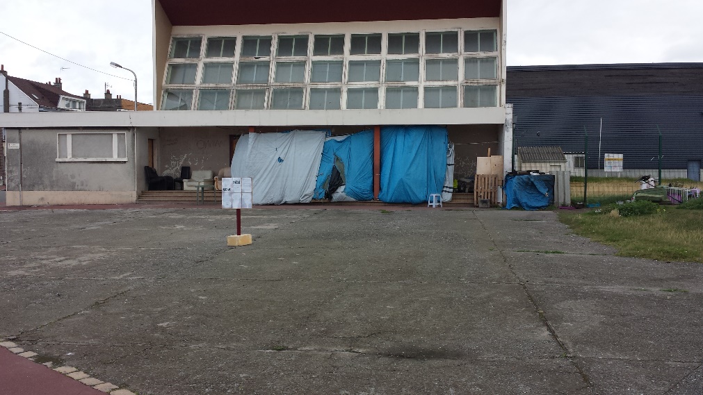 Le camp est en fait un énorme bidonville où les conditions d’hygiène et de promiscuité sont déplorables : quelques robinets branchés sur des conduites à 30 cm du sol, des blocs toilettes dans des rangées de cabines, des détritus et des poubelles partout car la municipalité ne s’occupe qu’occasionnellement de leur ramassage. Un anglais, Tim, un sans-abri de No Border, y loge également depuis 6 mois dans une caravane déglinguée et colorée. Il s’est présenté à notre consultation, pieds nus et blessés ; son traitement a consisté en la fourniture de sandales après un nettoyage intensif de ses jambes. Jules Ferry proprement dit reste propre et organisé, et distribue tant bien que mal 2.400 repas une fois par jour grâce à une association publique municipale « Vie active ». Les priorités (enfants, femmes enceintes, etc) ont été totalement supprimées en raison de leur détournement systématique. La file d’attente pour les repas peut ainsi s’étaler sur plus de deux heures. Il n’y a dans cette partie aucune capacité d’hébergement (sauf pour quelques femmes et enfants), ni aucun siège pour éviter que les migrants ne s’assoient et s’installent ; ils prennent donc leur unique repas quotidien debout, éventuellement abrités d’une bâche en cas de pluie, fréquente en cette saison.