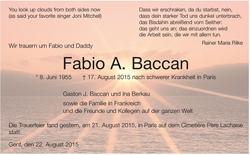 Fabio, merci pour tout. Que ton âme repose en paix.