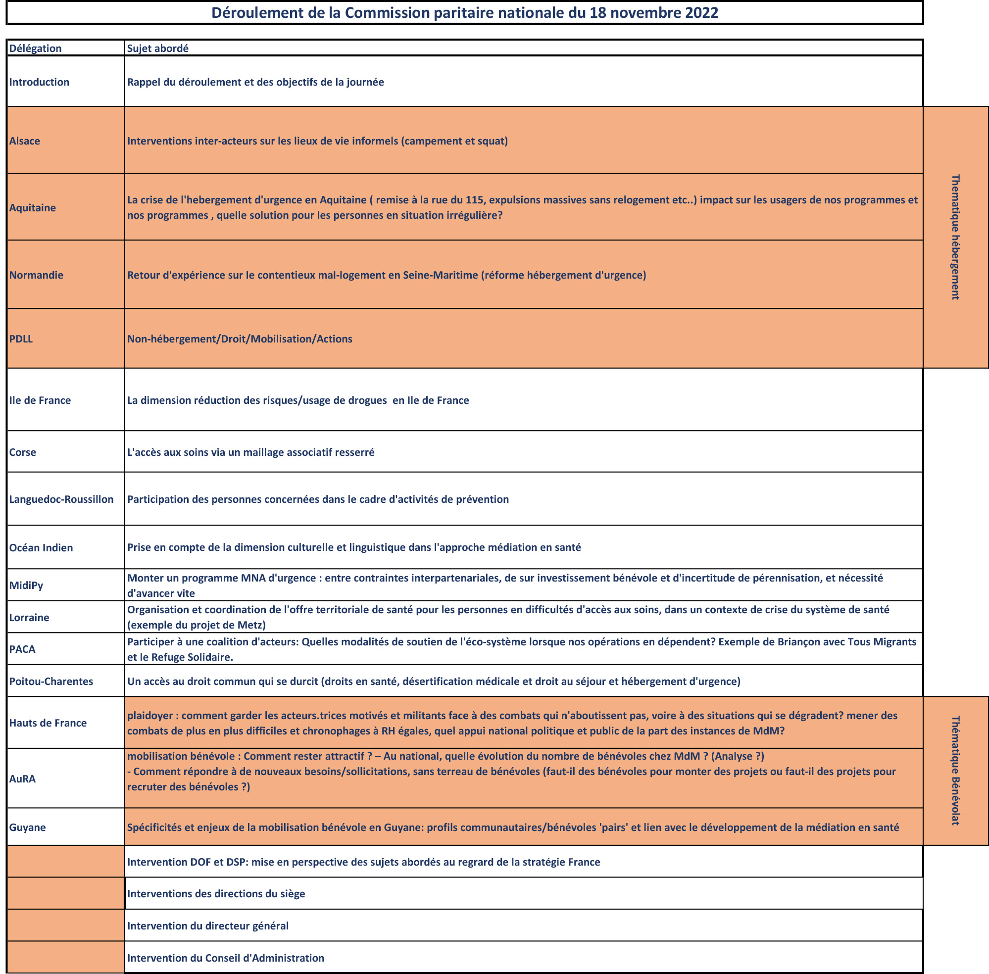 Le 18 juin 2022, s’est tenue la commission paritaire nationale au siège de Médecins du monde. L’objectif est de réunir tous les acteurs.trices de l’Association pour faire un point sur les préoccupations actuelles des Régions, les mettre en perspectives dans le cadre de la Stratégie France et plus largement dans celle des engagements de MdM. Notre délégation y a présenté un retour d’expérience.